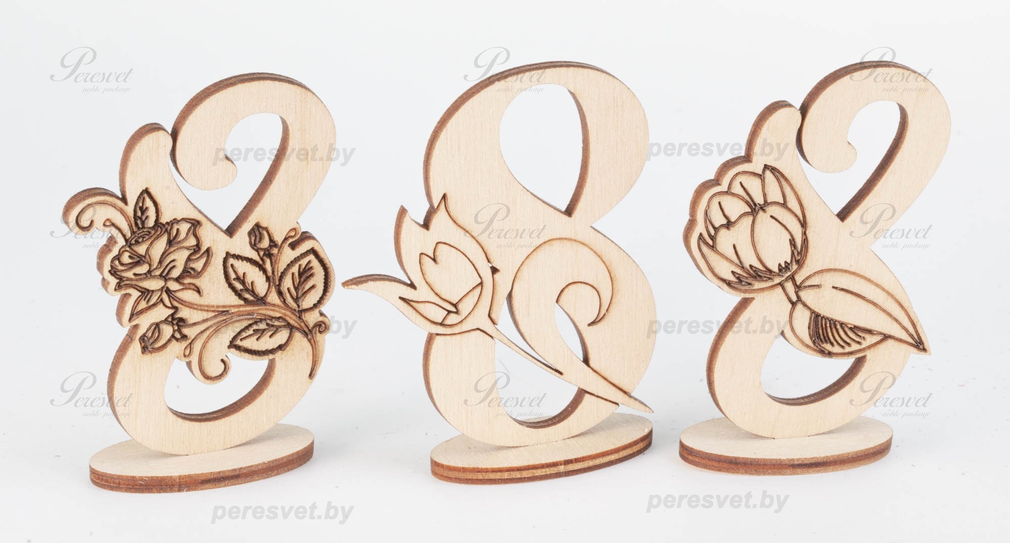 Самый нежный, романтичный и наконец-то женский праздник – 8 марта! Именно в этот день особенно хочется радовать и баловать своих мам, бабушек, жен, девушек: всех дорогих и близких нашему сердцу женщин. Чем же удивить? Что же подарить? Ответ прост! Компания Peresvet.by поможет Вам подобрать любой подходящий для Вас и Вашего мероприятия подарок. Подарочная фанерная фигурка на 8 марта станет отличным сувенирным подарком или дополнением к вашему основному подарку. Хотите скромно, но со вкусом порадовать любимого человека? Сувенирная фигурка на 8 марта никого не оставит равнодушными. Фигурка 8 марта простоит у Вашего любимого человека не один год и будет долго напоминать о таком памятном дне. Подарок, дополненный нашей фигуркой вы можете презентовать родным, близким, друзьям и коллегам по работе. Подарочная фанерная фигурка на 8 марта может быть не только подарком, но и послужит отличным украшением в вашем интерьере.