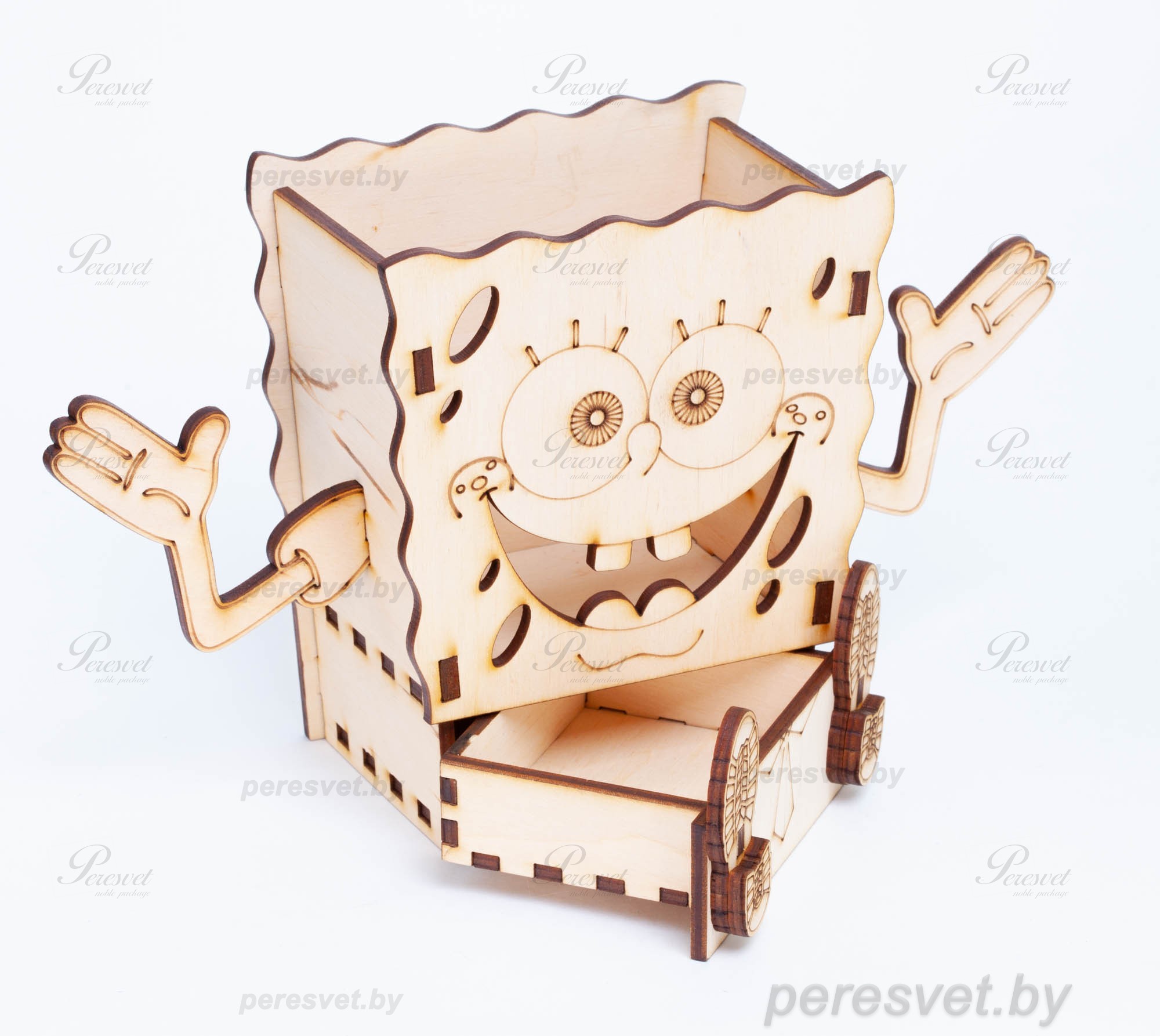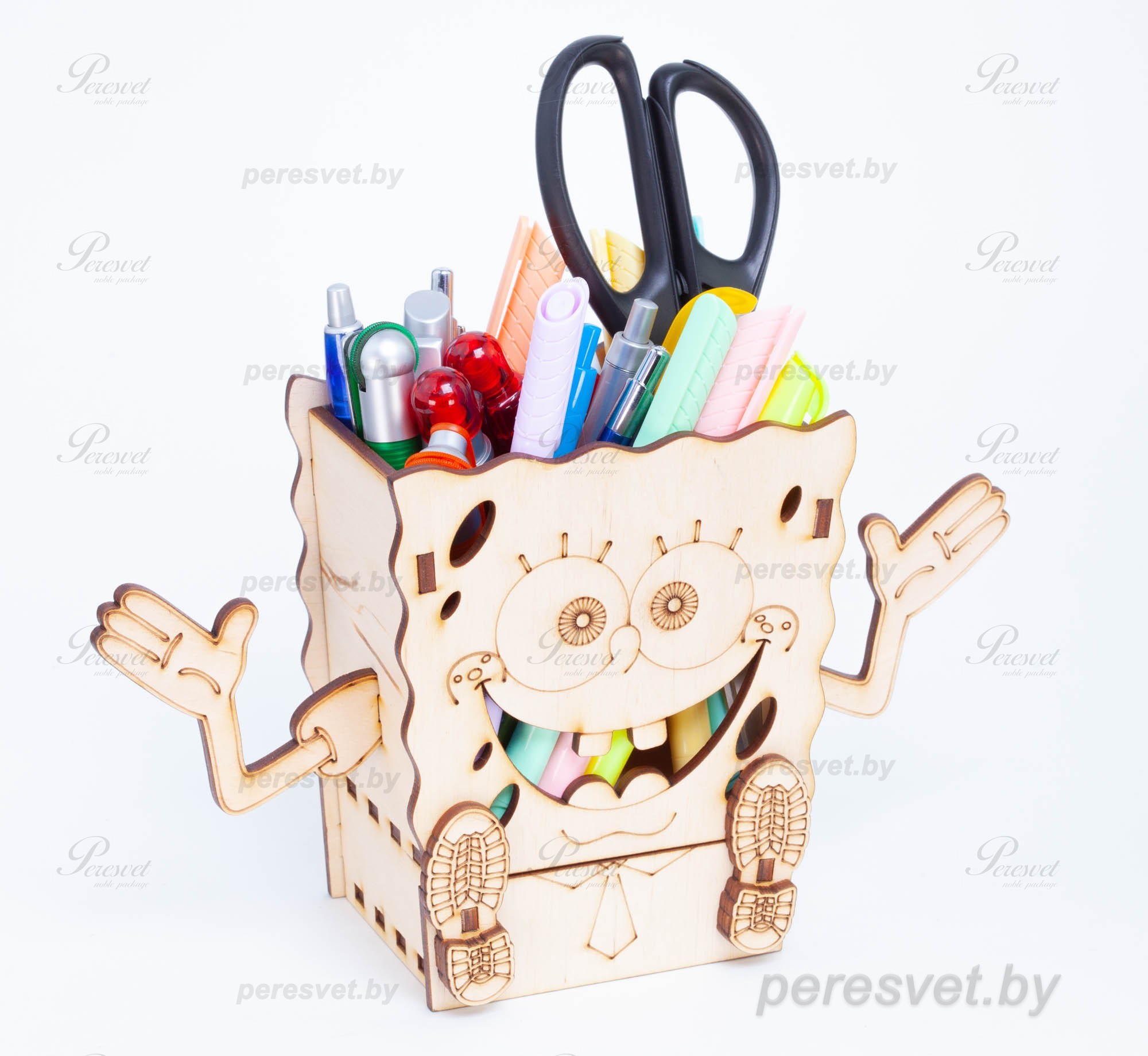Предлагаем вам удобный органайзер Губка Боб для хранения ручек, карандашей и других мелочей, которые могут внезапно понадобиться. Он станет удобным предметом на столе как взрослого человека, так и ребёнка. Органайзер безопасен и не разобьётся при падении. По желанию, ребёнок сможет его раскрасить.