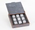В набор входит деревянная упаковка из фанеры с тонировкой и 9 камней Карельского ледника для охлаждения напитков.