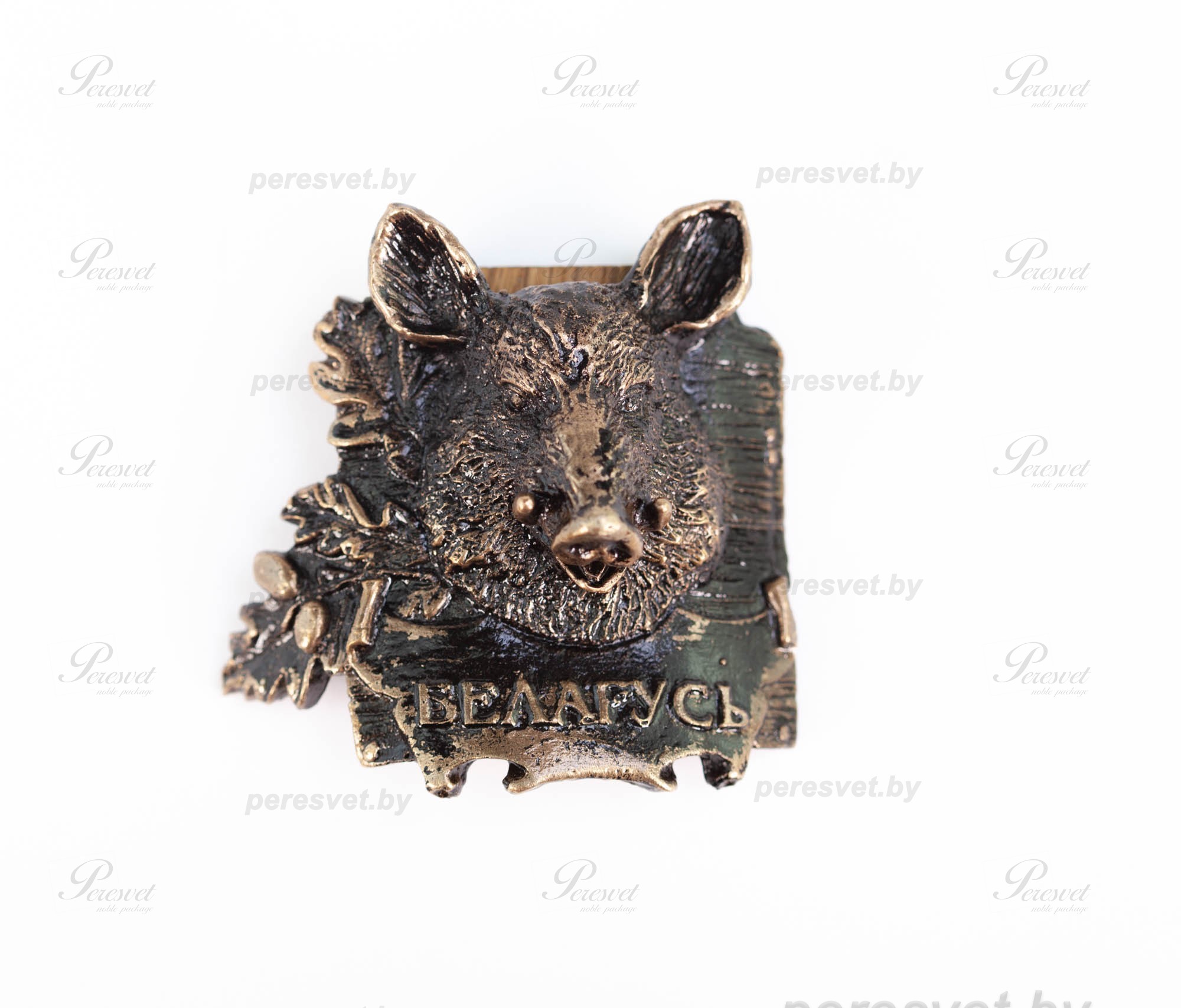 Шильда Белорусский кабан тёмная художественное литьё из бронзы