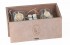 В подарочный набор входит 2 стакана для напитков с бронзовыми шильдами, камни для виски, бумажная стружка и фанерная упаковка.
